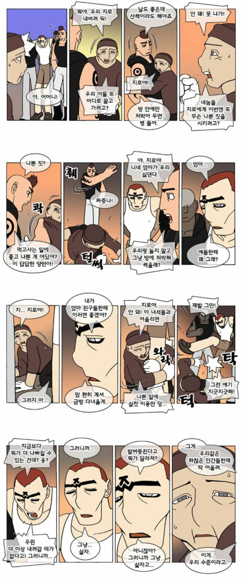 지로의 이런 쓰레기같은 행태를 보고 어떤 이는 눈살을 찌푸리며 경멸의 눈빛과 언행을 마다않을 것이고, 어떤 이는 섬뜩해하며 그저 멀리서 타인의 불행을 감상하리라. 물론 이것 외에도 이런 마약에 찌든 인간을 동정하거나 그저 웃음거리로 삼고 내 이득을 위해 이용하는 방법도 존재한다. 이 중 어떤 방식이든, 그 누구도 지로처럼 이렇게 자신이 그저 약물중독된 폐인으로 살아가길 진심으로 원하는 사람은 아무도 없을 것이다. 지로도 힘든 슬럼가 생활에서 그저 당장의 위안, 지금의 쾌락을 쫓다보니 자기도 모르게 약쟁이가 되었을 뿐. 물론 오해하지는 말아달라. 이는 결코 지로에 대한 정당화가 아니라, 구조적 피해자라는 관점을 슬쩍 드러내고 싶었을 뿐이니.