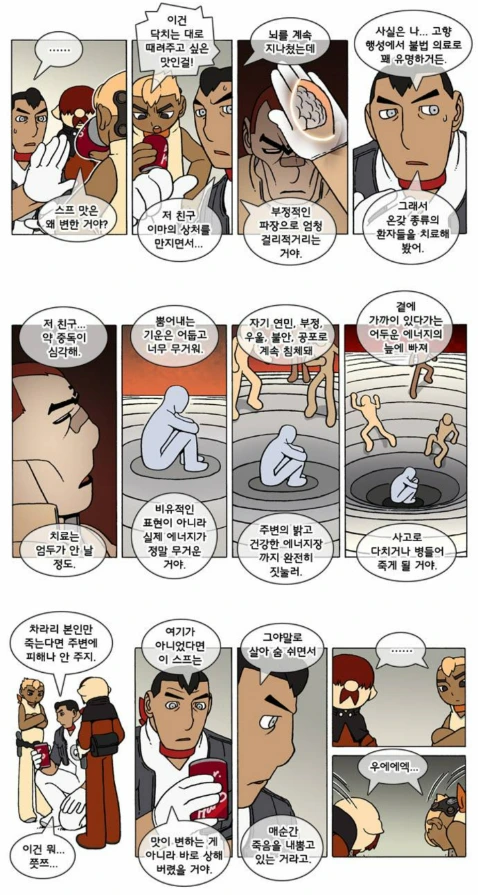 바로 덴마의 제8우주에 물리적 오류를 일으키는 능력자인 퀑의 짝이자 천적, 악몽 그 자체인 전사체도 콴의 냉장고 안에서 활동하고 있었던 것이다. 흔히 냉장고는 백화점만큼이나 자본주의를 상징하는 발명품으로 여겨진다. 모든 상품은 금괴 같은 비생명체가 아닌 이상, 특히 식품들은 유통기한이 존재한다. 더이상 소비할 수 없게 되는, 소비했다가는 오히려 해가 되는 시간의 제약이.