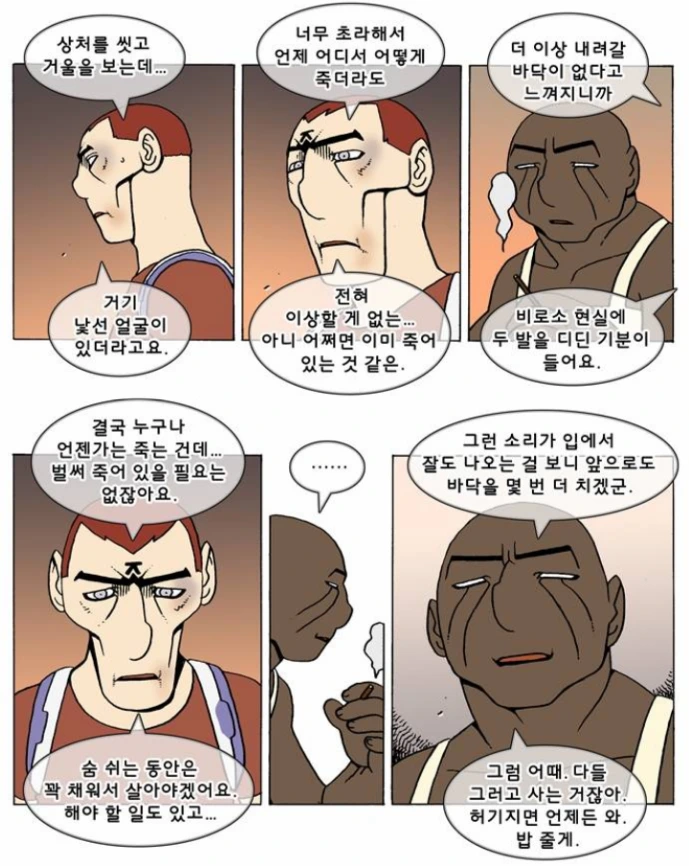 허나 이 와중에 지로는 말한다. 타인의 낙인으로 내가 스스로 쓰레기로 떨어지고 있을 때, 그래서 내 힘으로는 도저히 이 밑바닥 쓰레기 인생에서 벗어나기 힘들고 타인의 구원을 너무나 열망할 때 바로 그 때, 내가 나를 도와야 한다고.