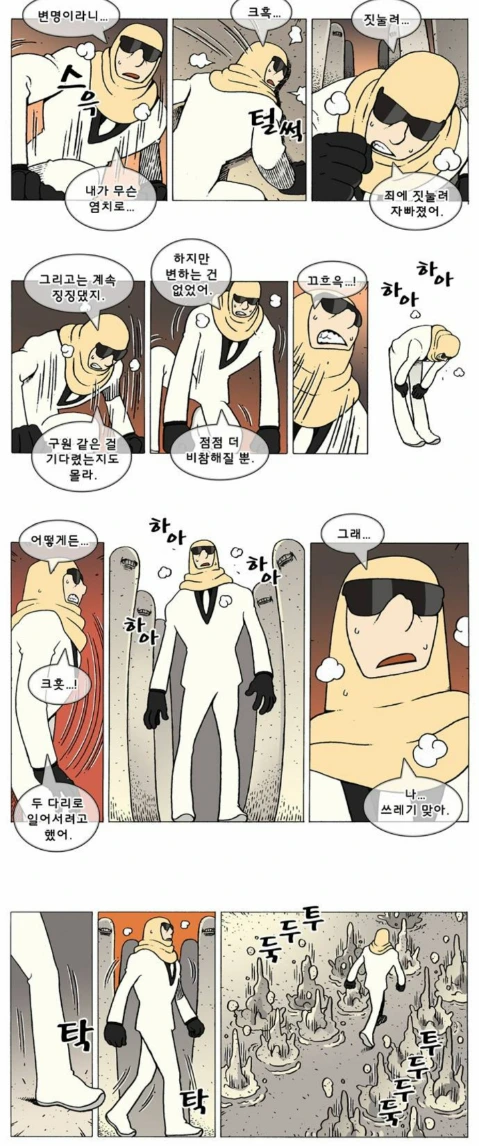 허나 스스로의 과오로 쓰레기 약쟁이 살인범이 된 지로에게도 단 하나의 해방구가 있었다. 그건 바로 외부의 구원이나 메시아를 기다리는 것이 아니라 자기 자신의 과거를 인정하고 화해하고 반성하는 길. 히말라야를 세르파 한명도 없이 오르는, 언제 어디서 크레바스 낭떠러지로 떨어질 지 모르는 위험천만한 길이지만 바로 그래서 혼자 가야만 하는 길. 하지만 혼자 가다보면 또 자신같이 혼자서 험한 산을 오르는 길동무들을 마주치기도 하는 길.