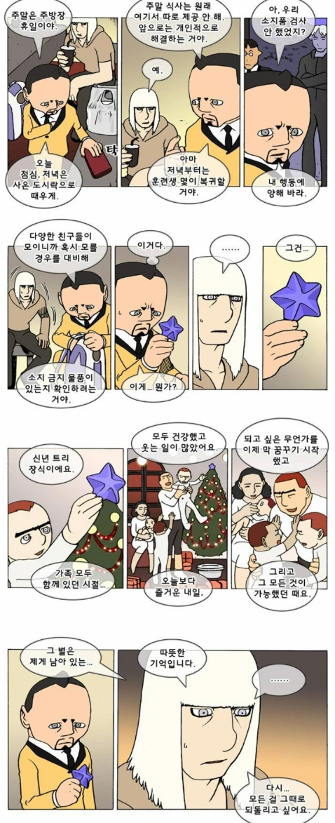 물론 그것은 단순히 지로가 운이 좋아서, 인복이 많아서만은 아니다. 남들보다 마약을 서너배나 복용할 정도로 심각한 중독자였던 지로가 그 증세를 버텨내고 스스로를 구원할 수 있었던 가장 큰 계기는, 과거 기억을 읽어내는 자기의 희귀한 퀑 능력을 마약이나 돈벌이가 아니라 자기 자신의 구원을 위해 쓴 이 장면이리라. 가족과의 따뜻하고 희망찬 미래를 상징하고 끝없이 회상하게 해주는, 너무나 되돌리고 싶은 세계. 지로의 크리스마스 트리 장식.