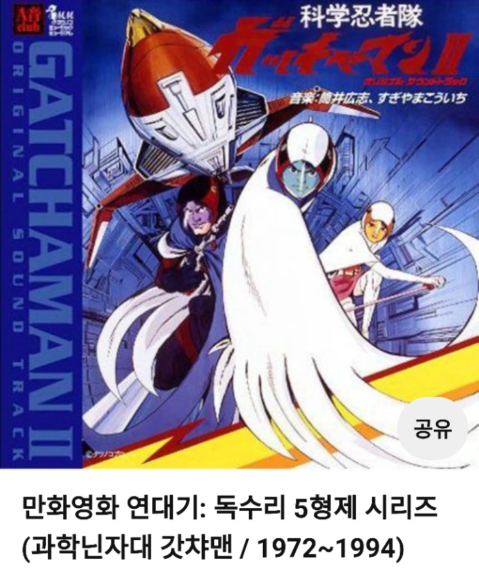 중학생 부터였을까. 아니다 초등학생 때부터다. 독수리 오형제는 나의 어릴적 첫 우상이었고 아이돌이었고 덕질의 대상이었다.아직 집에 내 개인 컴퓨터도 드물던 시절 티비에서 하는 만화는 거의 유일한 즐길거리였다. 그래서 운동회하면 전교 꼴찌를 다투던 나조차도 독수리 오형제의 본방 사수를 위해 늦기전에 집에 가서 숙제를 끝내버리고 티비앞에서 두근거리던 유년의 기억이 생생하다.
