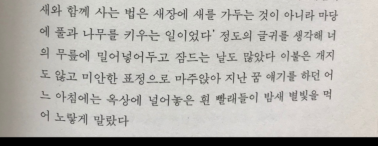 박준이 시에서 타이르듯이, 자신이 아름다운 소리를 지저귀는 새를 사랑하니까 새장에 새를 가둬서 키운다는 사람들이 넘쳐나는 세상이다. 그 사람들은 자기 힘으로 새를 잡아 먹이를 주고 키워낸다며 뿌듯해하지만, 사실 진정으로 새를 사랑하고 위한다면 마당에 풀과 나무를 키우고 새 자유롭게 두는 게 최고의 사랑일 것이다. 사랑해서 새를 새장에 가두는 건 사실 진정한 사랑이 아니라 나의 욕심과 이기심에 불과 수 있기에