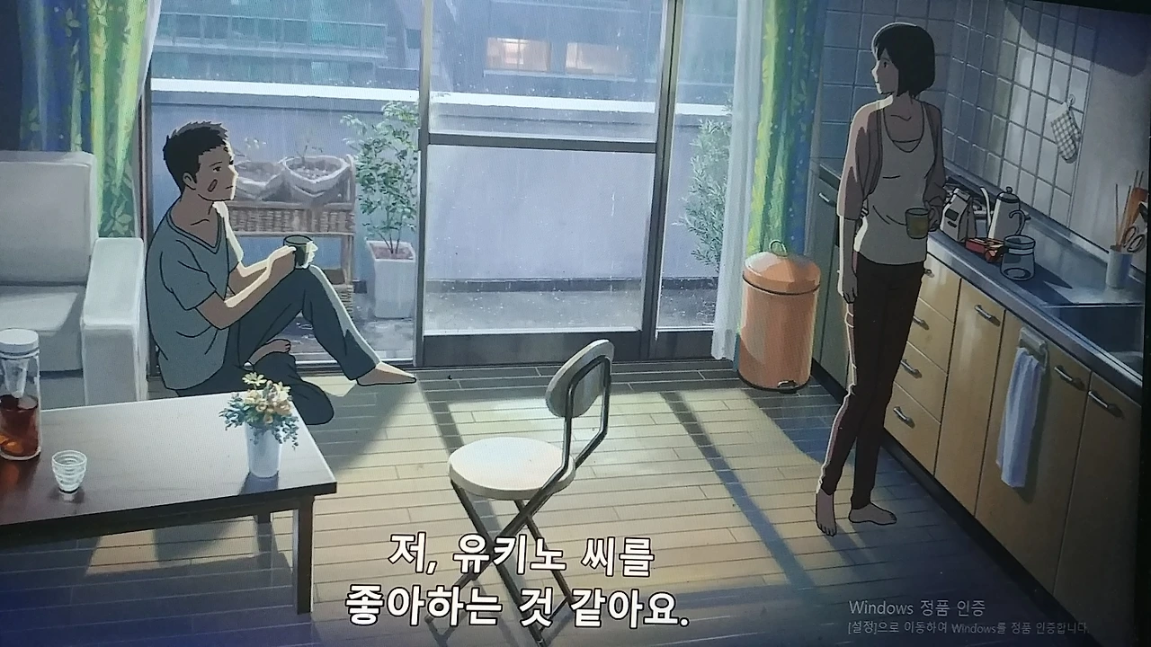 마치 처음에 말한 오래된 로맨스 문학의 첫 번째 전통처럼 타카오를 있는 힘껏 끌어안는 유키노. 보통의 연애서사라면 여기서 바로 끝나고 그리고 그 둘은 오래오래 행복하게 살았습니다 하며 엔딩 크레딧이 올라가도 큰 어색함은 없을 것이다.