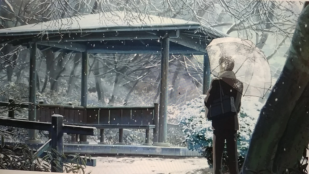 이렇게 꿈 이야기를 하고 옥상에 널어놓은 흰 빨래들이 밤새 별빛을 먹고 노랗게 말랐다는 박준처럼, 타카오는 어느덧 겨울이 되자 홀로 여름의 그녀를 만났던 공원의 정자를 찾아간다 그리고 엔딩 소리 없는 독백이 흐른다