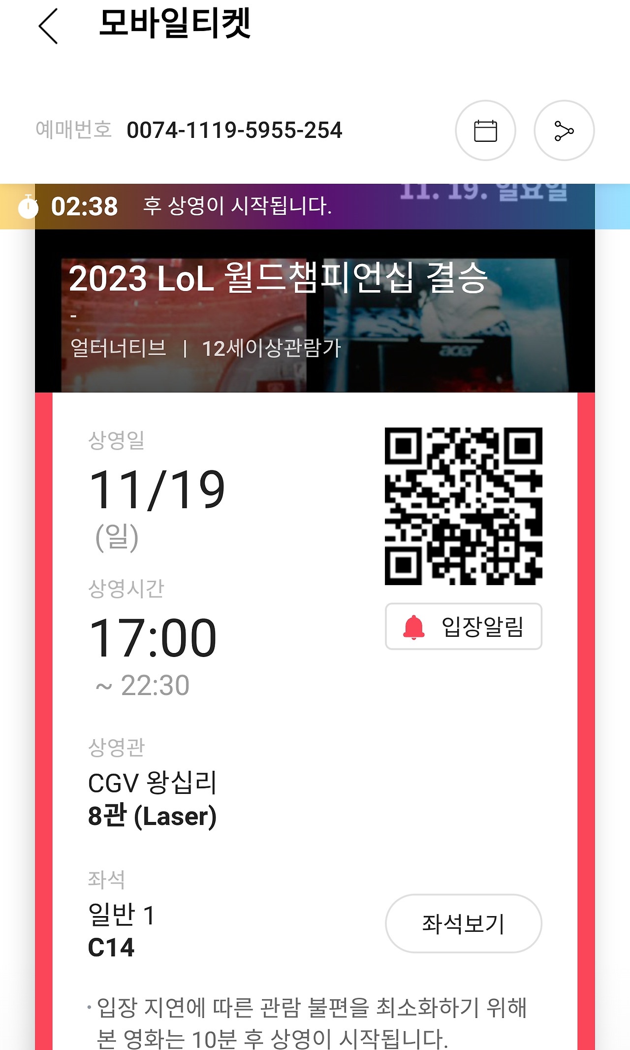 랜선콘서트를 감상하다가 집오는 길가의 쓰레기를 하나 줍고나니 내일 결승전을 어떻게 볼지 문득 새삼 대단하게 고민이 들기 시작했다. 그냥 집에서 볼수도 있지만 5년만에 한국에서 하는 롤드컵인데 이대로 놓치면 굉장히 아쉬울거 같다는 마음이 온몸을 파고들기 시작했다. 이제와서 고척돔 직관표를 구하기는 암표를 제외하면 사실상 불가능한 일이고, 차선으로 홍대 티원 베이스캠프 피시방을 가거나 서울지역 cgv에서 롤드컵결승 표를 구하는 방안이 떠올랐지만... 티원 베이스캠프는 이제 홍대에 살던 시절이 아니니 어림도 없고, 당연하지만 모든 서울 시지비가 매진이다.