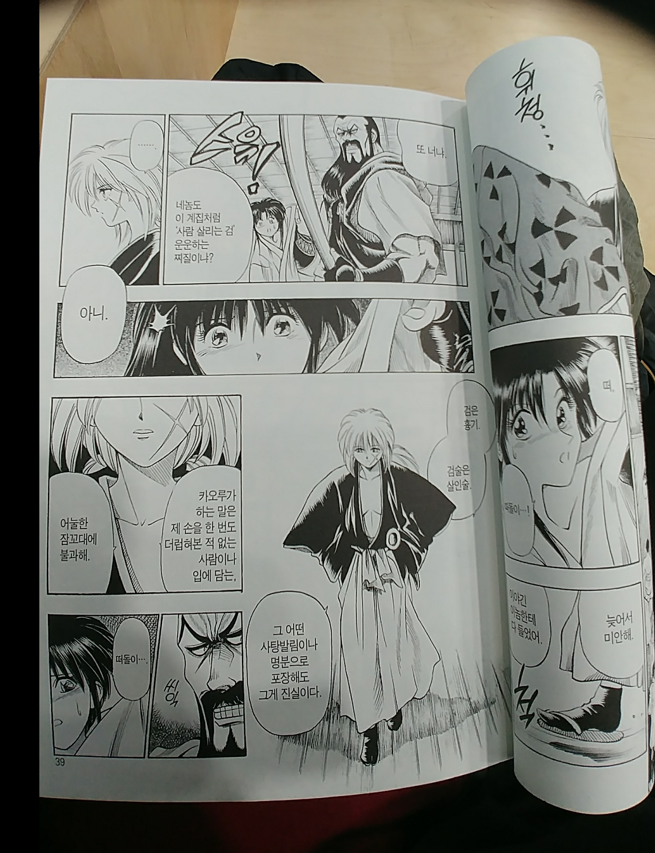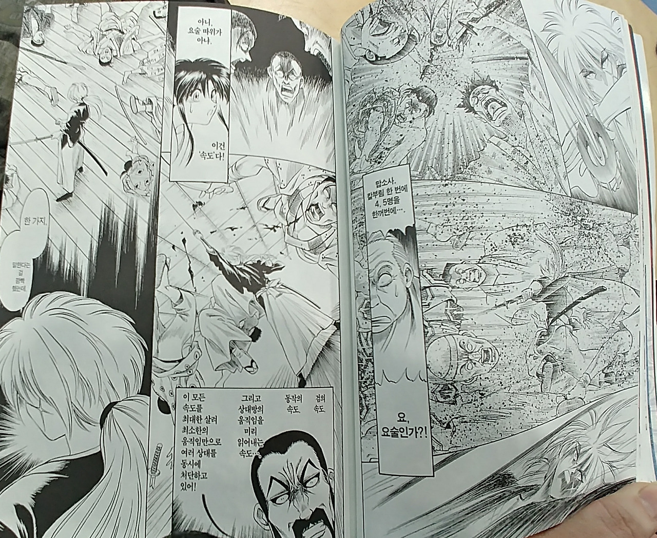 처음 한번은 우연일 수 있지만 두번째는 규칙 세번째는 필연성의 영역이라고 어딘가 철학책인가 소설에서 본듯도 하다. 아마 한때는 동네 구역구역마다 있었던 만화 비디오 대여점이 시대의 파도에 쓸려내려간 것도 도서관에 만화책들이 들어선 것과도 무관하진 않을 듯하다. 그리고 이렇게 새로이 들어선 만화책 중에서 꽤나 이질적인, 하지만 굉장히 반가운 뺨에 십자 칼자국이 강렬한 낡은 검잽이를 마주쳤다.
