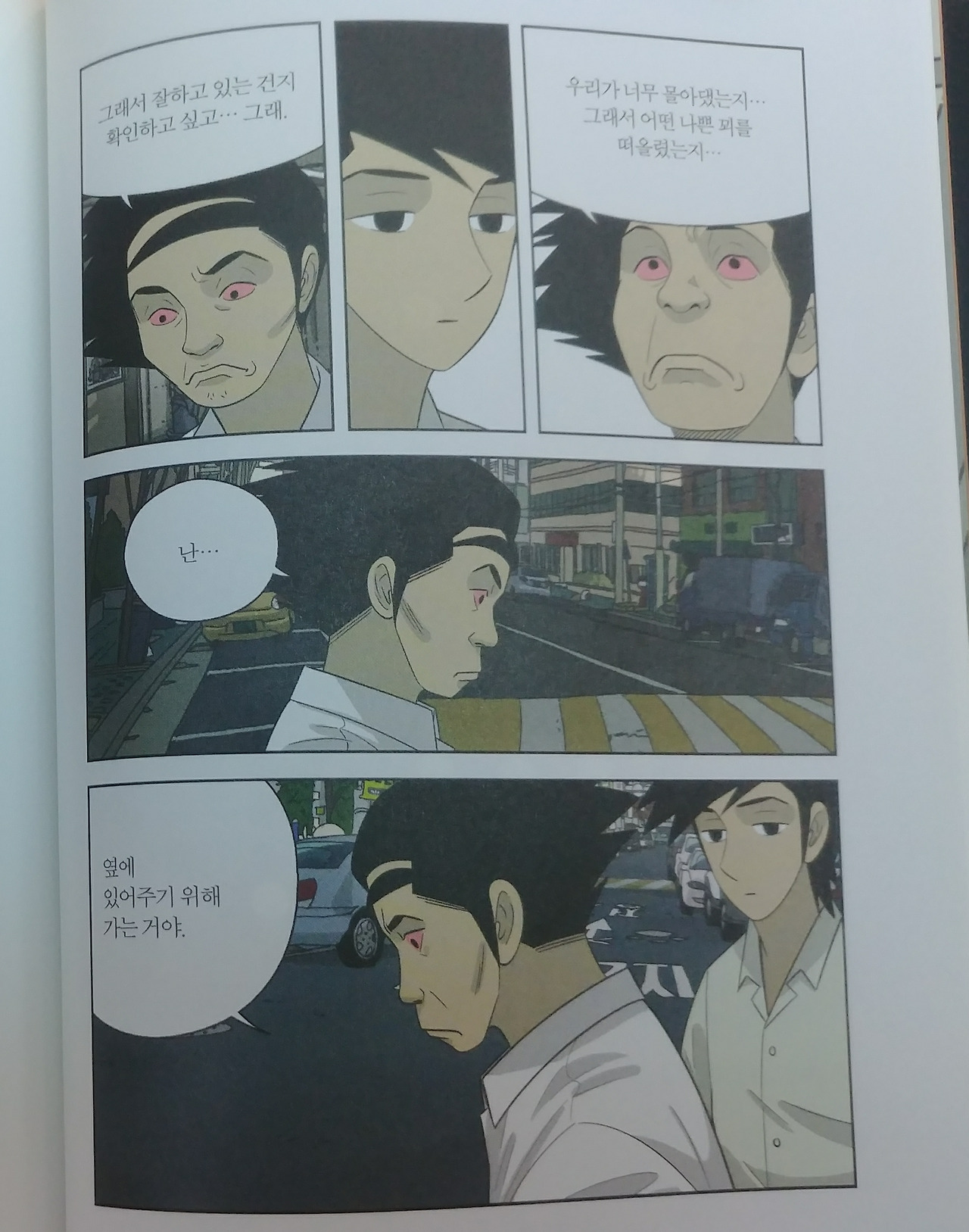 글로벌 자본주의라는 거대한 시스템 속에서 내가 바로 내 삶의 주인이다 외치는 것은 종종 쉽게 공허해진다. 그렇지만 이 소외되기 쉬운 삶이라도 누군가가 함께 걸어준다면, 단 하루라도 누가 내 옆에 있어준다면 그 삶은 공허하거나 무의미 하지만은 않았다고 말할 수 있으리라. 오 팀장처럼 멋진 어른은 되지 못할지라도, 오 팀장처럼 힘들어하는 누군가의 옆에 있어주기...