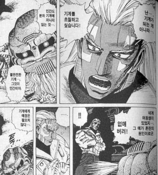 오히려 생명, 유기체는 그저 아직 분석하지 못한 정교하지만 불완전한 분자 기계라고 생각할수도 있지 않을까? 그리고 현대 문명인들은 스마트폰과 컴퓨터 없이는 생활이 유지되지가 않는다. 극단적으로 말해서 우리는 지금 당장 손가락이나 발가락 하나는 없어도 생활이 가능하지만 스마트폰이 고장나거나 없으면 일상이 무너지는 것이다. 그저 신체의 외부에 있다고 해서 우리는 사이보그는 아니라고 말할 수 있을까. 포스트 휴머니즘 같은 사상이 말하듯이 21세기 우리 인류는 이미 기존 인류와 단절된 포스트 휴먼인지도 모를 일이다. 그리고 역설적으로 19세기보다 훨씬 경쟁이 격화되고, 전쟁이나 다름없는 21세기의 취업경쟁 속에서 우리는 사실 이미 알고 있지 않은가. 인생은 전쟁이고, 인간은 싸움 없이는 아무것도 얻을 수 없다는 것을.