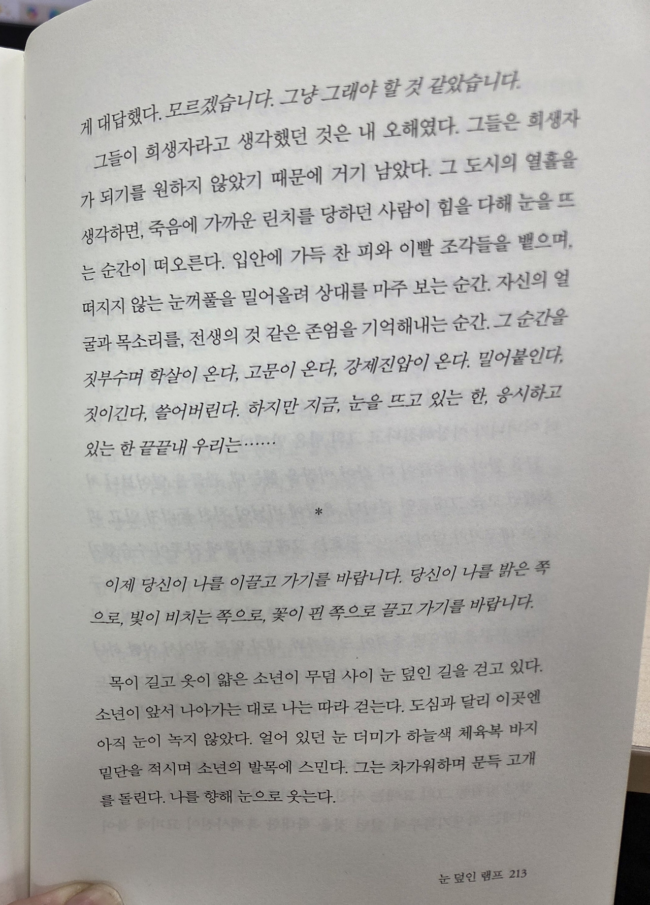 그런 질문에 한강은 80년 오월의 광주로 답한다