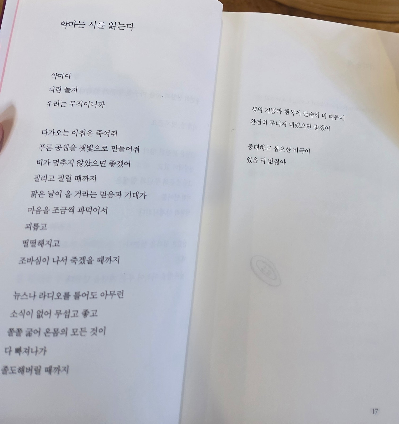 한가하니까 악마도 나도 시를 읽어볼까