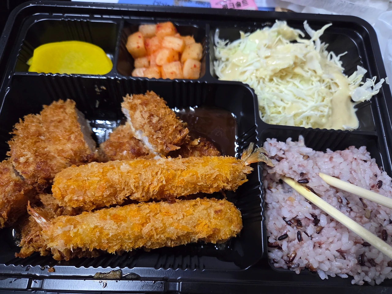 오늘의 저녁은 새우튀김 도시락을 와그작