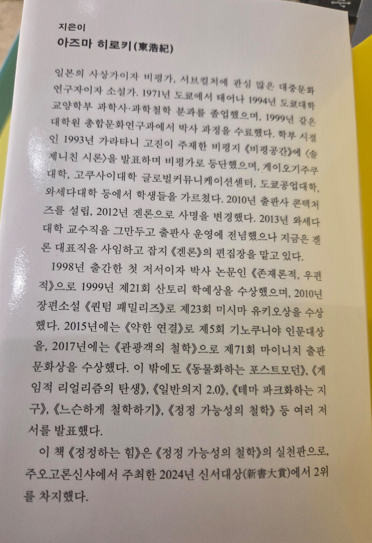 아즈마 히로키는 그의 첫 저서이자 박사논문인 존재론적 우편적부터 주목받고 '동물화하는 포스트모던' 책부터는 일약 출판계의 스타가 된 일본의 대표적인 비평가이자 철학자다. 내가 좋아하고 존경하는 철학자인 가라타니 고진과 약 20년 정도 나이차이로 딱 한세대 정도의 차이.