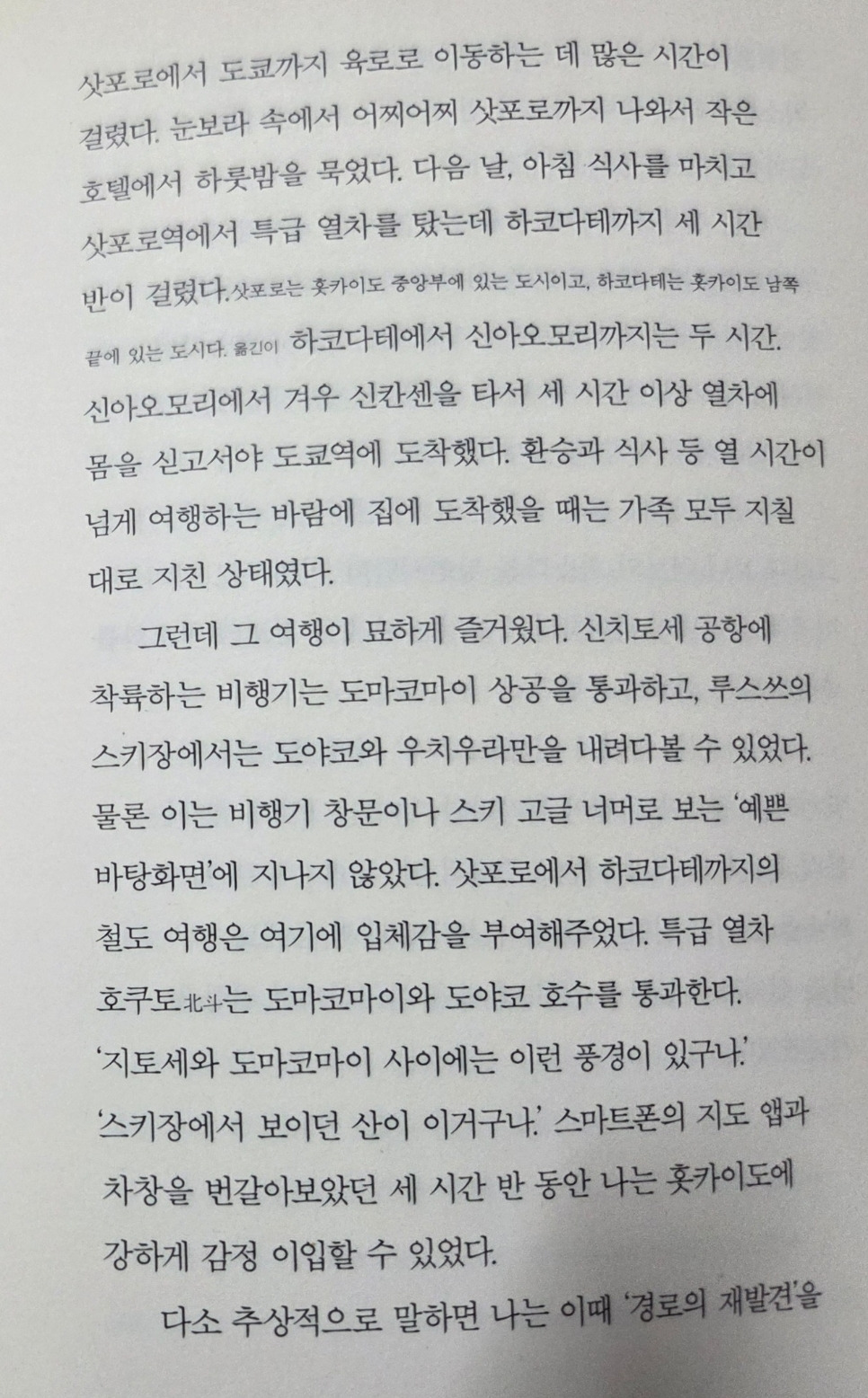 물론 철학자라고 해서 무슨 뾰족한 비법이나 초능력이 있지는 않다. 공항에서 삿포로로 가서 거기서 또 하코다테로 갔다가 신아아오리로 갔다가 어쩌구 저쩌구 우여곡절을 거쳐 무려 열 시간을 걸려서 겨우 도쿄로 돌아온다.