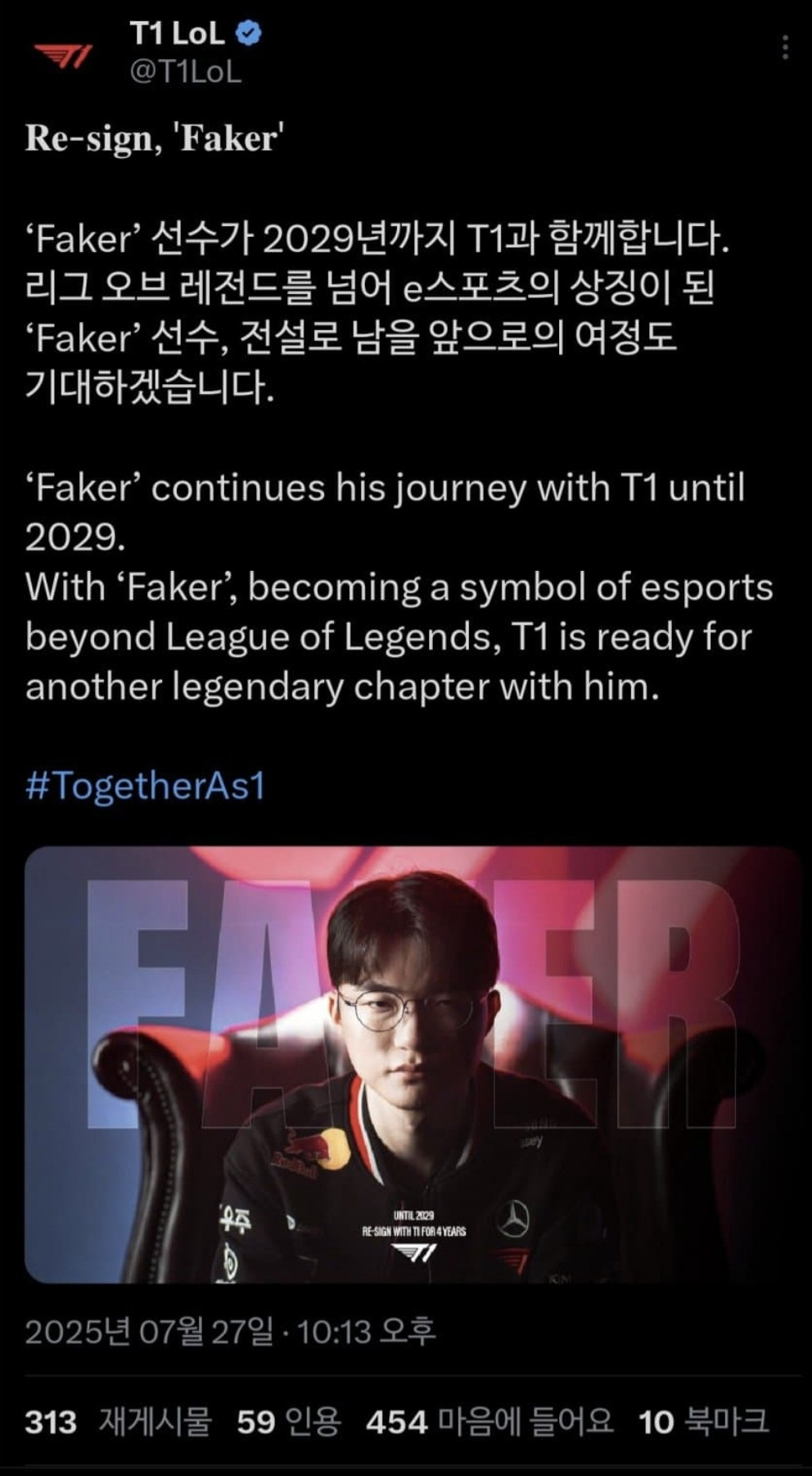 페이커 대상혁의 재계약을 다시 한번 축하한다
