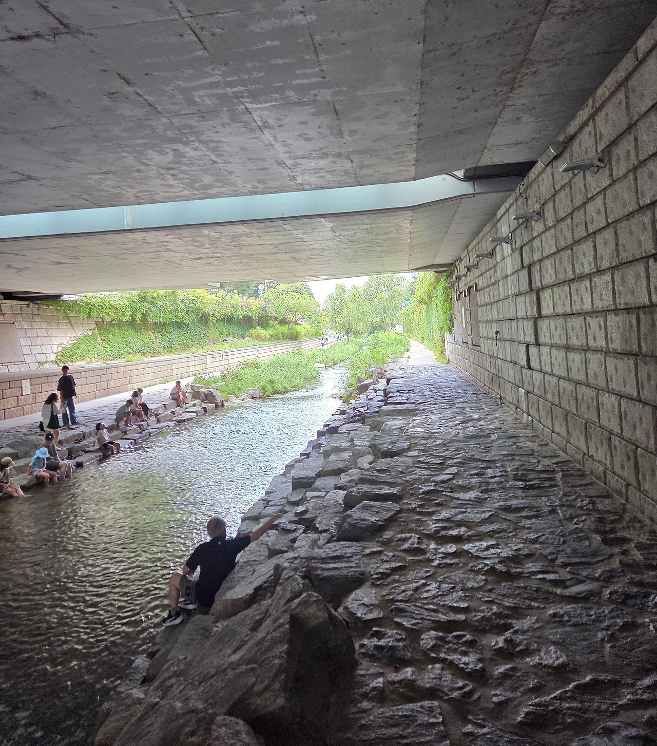 청계천 산책길 다리 밑 그늘의 틈