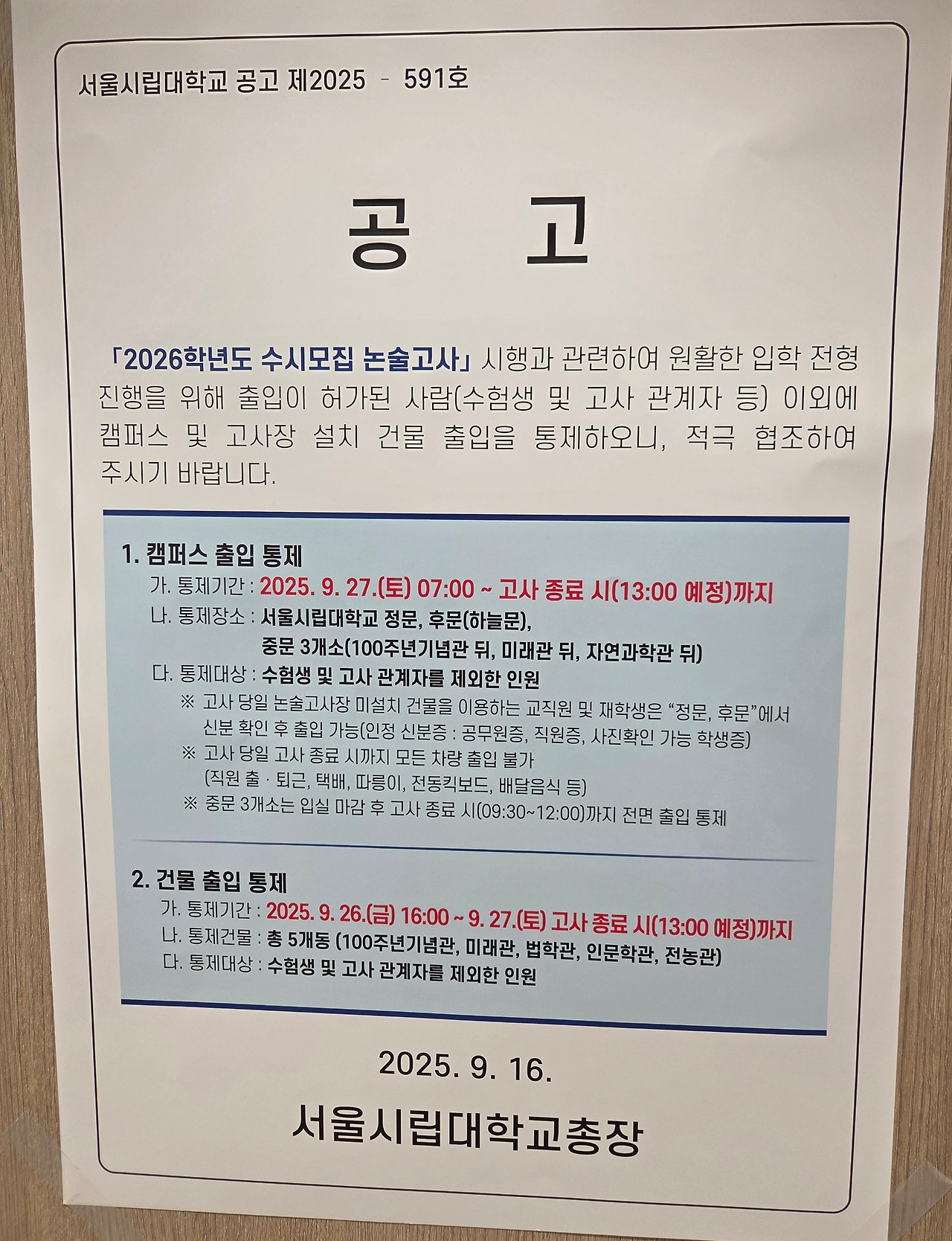 대입 논술고사 관계자 와엔 모두 학교를 떠나라