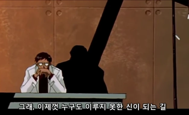 하지만 에바 티비판 26화 내내 이 인류보완계획이 구체적으로 무엇인지는 사실상 알 수가 없다. 구 극장판 엔드 오브 에반게리온에서야 겐도와 제레가 무엇을 기획한 것인지, 그리고 왜 막판에 둘이 대립하게 되었는지가 드러난다. 허나 그 둘은 인간적인 한계를 보완하고 극복했다기보다는 결국 니체가 조심하라고 강조했듯이 바람이 불어오는 방향을 향해 침을 뱉어버린 것에 불과한 것은 아니었을까? 쓰레기 산에 올라가서 여기는 쓰레기라고 말하는 바보짓을 한 것은 아닐까?