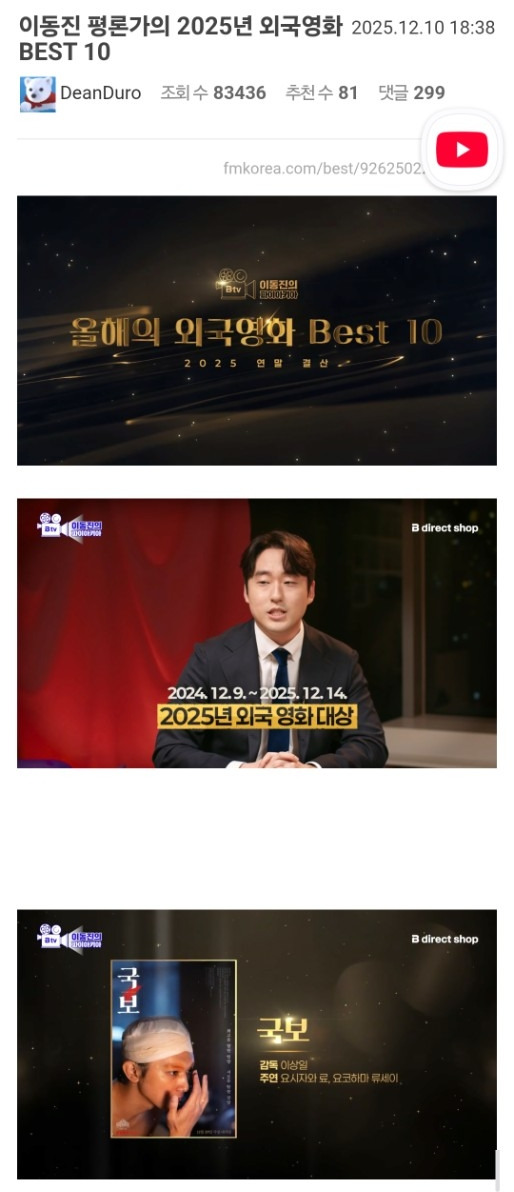 굳이 반복할 필요도 없지만 삶은 무상하다 한없이. 그럼에도 우리는 왜 이렇게나 이 허무한 인생에서 몸부림치는가? 일본에서 천만이 관람한 영화 국보는 바로 그 질문에 대한 하나의 답변이 아닐까. 아예 아무 감상도 쓰지 않는 게 예의가 아닐까 하다가 이동진의 올해의 외국영화 베스트 10에 국보가 들어간 것을 보고 약간 용기를 내어본다.