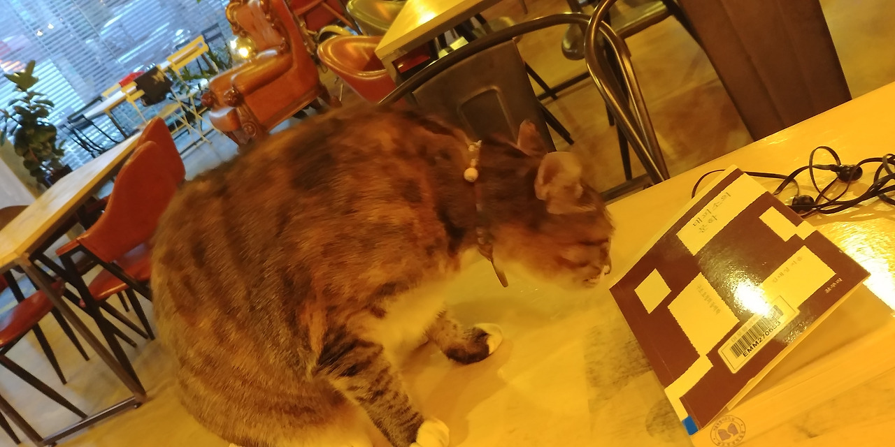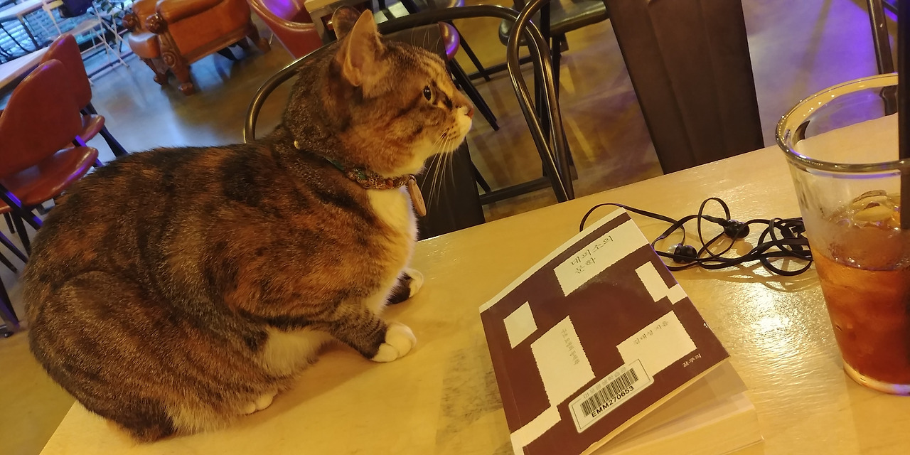 정말로 책을 읽고 싶은듯이 책 주변을 한참이나 배회하는 언니. 언젠가 동물의 의사소통 방식을 완전히 해명하는게 가능하다면, 인간의 언어와 서로 소통이 가능하다면 언니에게 그렇게 말해주고 싶다. 네가 바로 나에게 대피소였다고. 삶이 적적하고 허무하게 느껴질 때마다 너는 항상 이 카페에 있어주어서, 너무나 고맙다고.