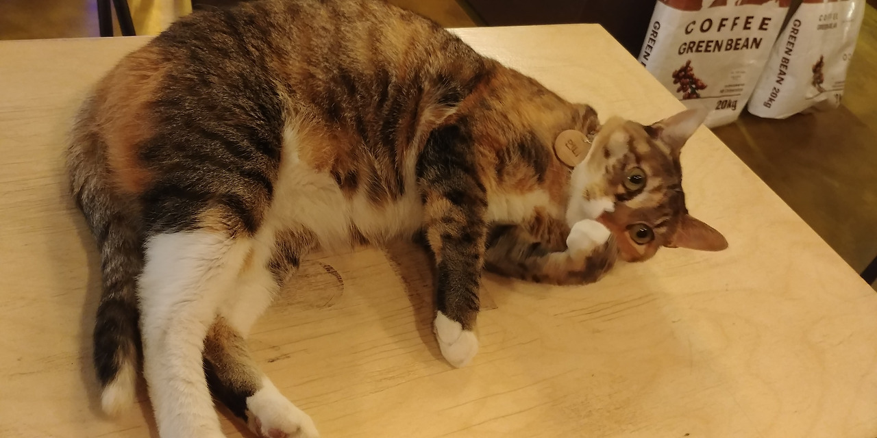 들어가자마자 카페 집사분과 언니 고양이는 나를 반겨주었다. 이상할 정도로 오늘 카페 디스코 플래닛에 손님이 없었다. 8시 반에 닫는데 이리도 사람이 없다니.원래 한적해서 좋은 카페이긴 했는데 월요일이라 더 그런걸까. 덕분에 마치 카페를 전세낸 듯 다른 손님의 눈치볼 것 없이 언니와 놀 수 있었다.