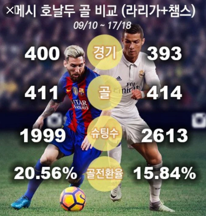 솔직히 이적할 당시엔 '호날두가 맨유에서 공을 몰아주니까 그렇게 골을 많이 넣은거지 ... 레알마드리드엔 호날두보다 거대한 슈퍼스타가 즐비하니까 그런 개인플레이하다가 골넣는 플레이는 끝났다' 라고 생각했지만 그야말로 10년전 축알못의 오산이었다. 호날두는 메시와 경쟁하면서 그야말로 세계적으로 메호대전이 열렸고 서로 불붙은 그 둘은 정말 비상식적인, 그야말로 게임에서나 가능한 미친 플레이를 보여주면서 엄청나게 많은 골을 넣어댔다.