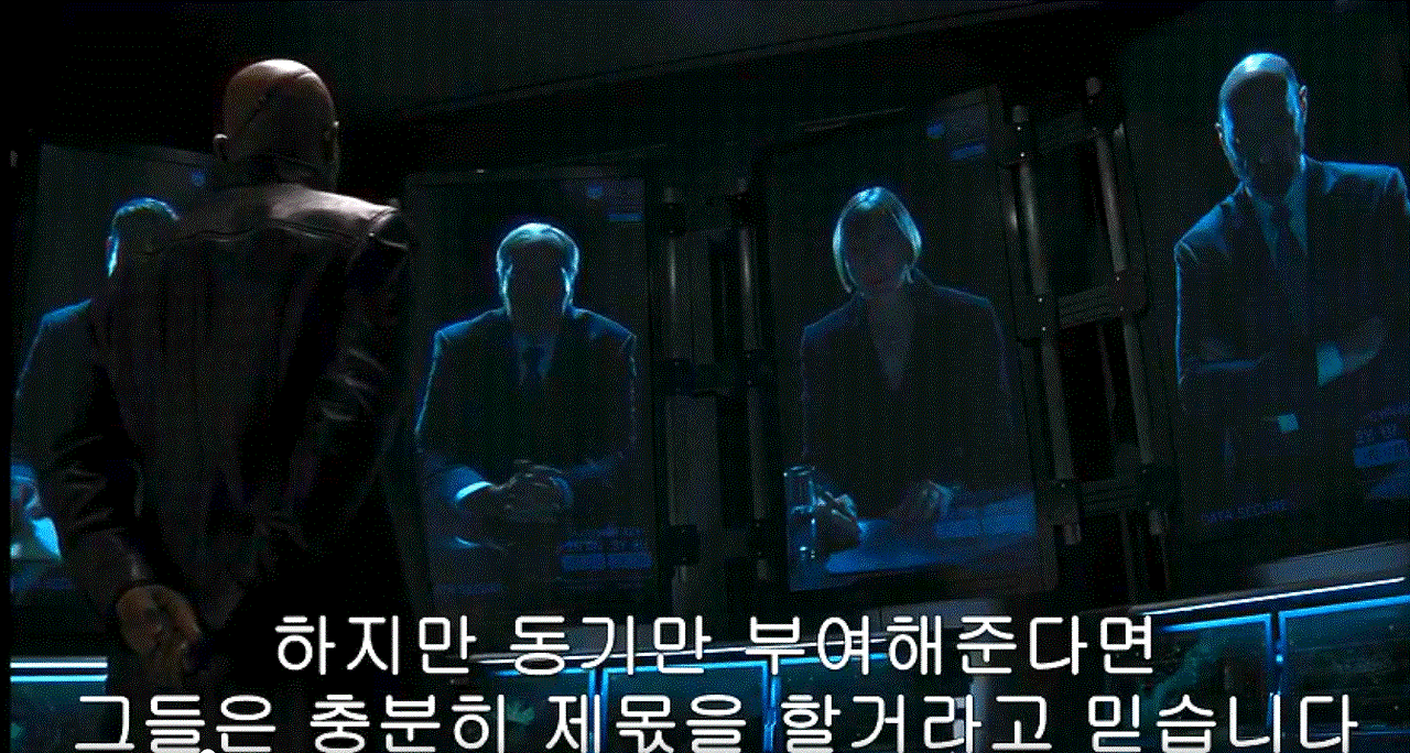 하지만 이런 균형이 안 맞는 어벤저스 멤버들이 하나로 뭉칠 동기부여가 주어진다면 충분히 하나의 팀으로 기능할 수 있다고 닉 퓨리는 마치 축구감독처럼 내다보았고, 콜슨의 희생이라는 동기부여로 이 예측은 진실이 된다. 심지어...