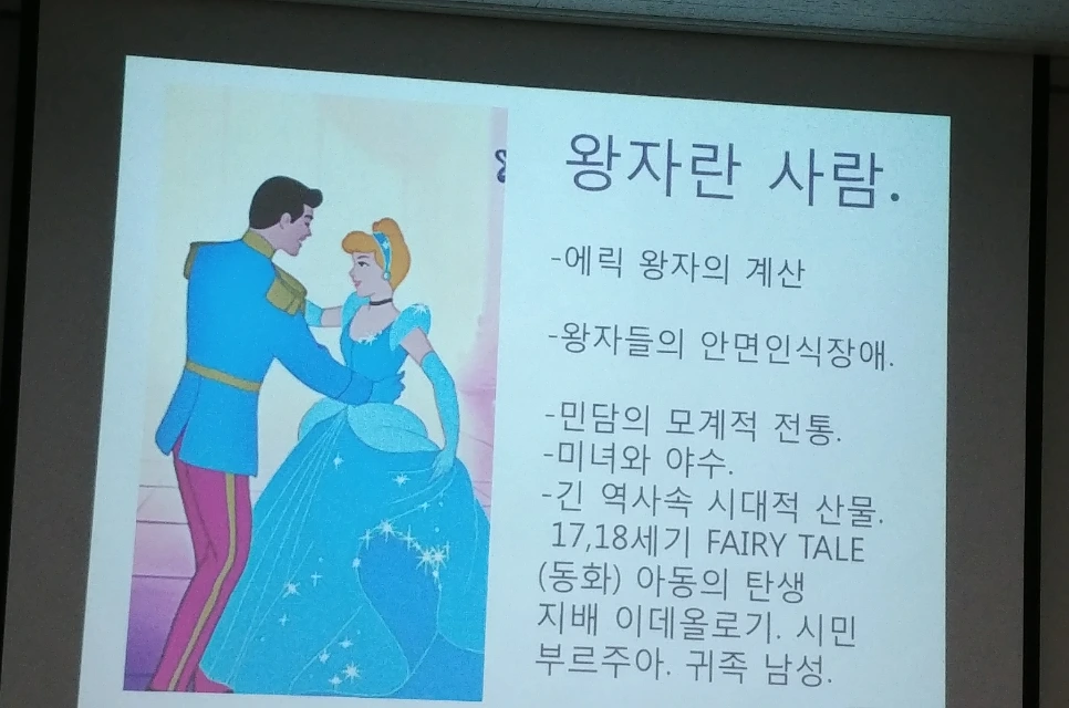 허나 신데렐라 이야기의 원전을 보면 알 수 있듯이 에릭 왕자는 분명 흰 구두에 멋진 드레스를 입은 신데렐라에게 반했음에도 12시에 그녀가 사라지자 또 다른 왕국의 공주들과 만나보며 계속 그녀들과 결혼하면 어떨지 계산해보고 저울질한다. 게다가 나중에 신데렐라의 집까지 찾아와서도 무슨 안면인식 장애가 있는지 못 알아본 척 하고는 사라져버린다. 이를 최현미 작가님께서는 17 18 세기에 동화가 처음 탄생할 때, 동화를 쓸 수 있는 교육받은 사람은 거의 귀족 남성일 수밖에 없었고, 그로 인해 자연스럽게 시민 부르주아 또는 귀족 남성의 이데올로기가 동화에서 드러나는 것이라 설명하셨다. 이런 것이 바로 시대의 한계이자 니체의 말을 빌리면 인간적인 너무나 인간적인 한계가 아닐까. 21세기엔 아동에게 들려주는 동화들도 새로운 각색이 필수적인 게 아닐까.