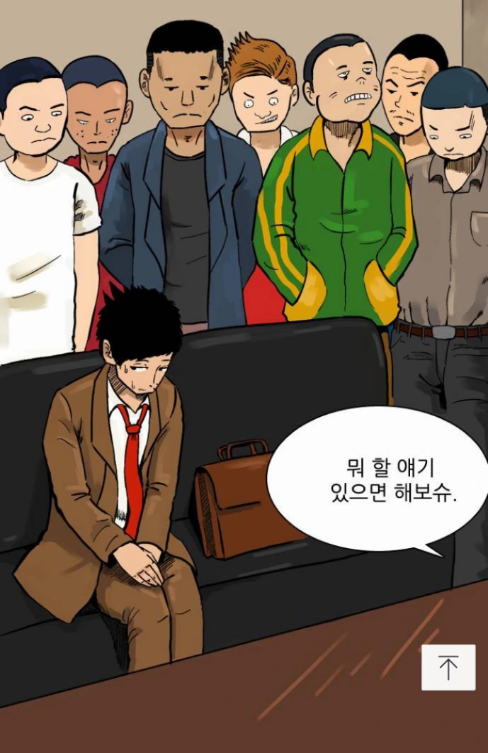 조들호는 한때 서울중앙 검사였고 지금도 변호사라는 지식 권력을 가지고 있음에도, 이렇게 많은 물리적 힘들 앞에서는 누구든 잠시나마 쫄아드는 마음이 들 수밖에 없다. 그리고 이런 깡패의 물리적 힘 외에도 사람들이 다들 찾아가게 되면 대부분 머리부터 숙이는 곳이 대한민국에는 딱 두군데 있다. 바로 검찰과 병원이다.
