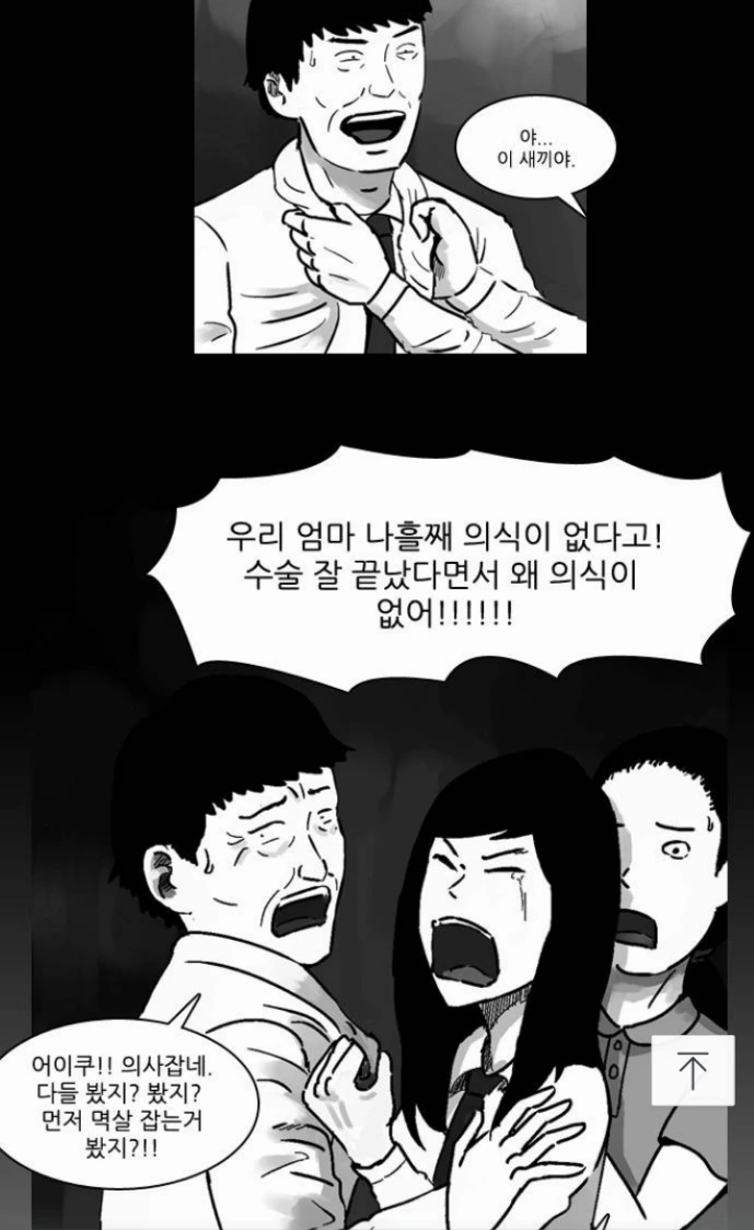 의사의 저 말은 분명히 진실을 담고 있다. 한 의대생이 의사가 되기까지 10년 넘게 공부한 엄청난 양의 직간접 지식은 단순히 환자의 가족에게 설명해준다고 해서 바로 알아들을 수 있을 만큼 쉽기는 어려울 것이다. 허나 이 의사는 그 지식 이상으로 인간으로서 수준 이하다. 아닌가? 아에 수술이 잘못되면 환자가족의 면회 상담신청도 거부하고 면피하는 일부 의사에 비하면 그래도 양심이 있는 편이라고 해야 할까. 결국 의뢰자의 부모님은 사망했고, 심지어 이 의사는 환자의 직계 가족인 딸 몰래 다른 친척과 보상 밀실합의마저 하려고 한다.