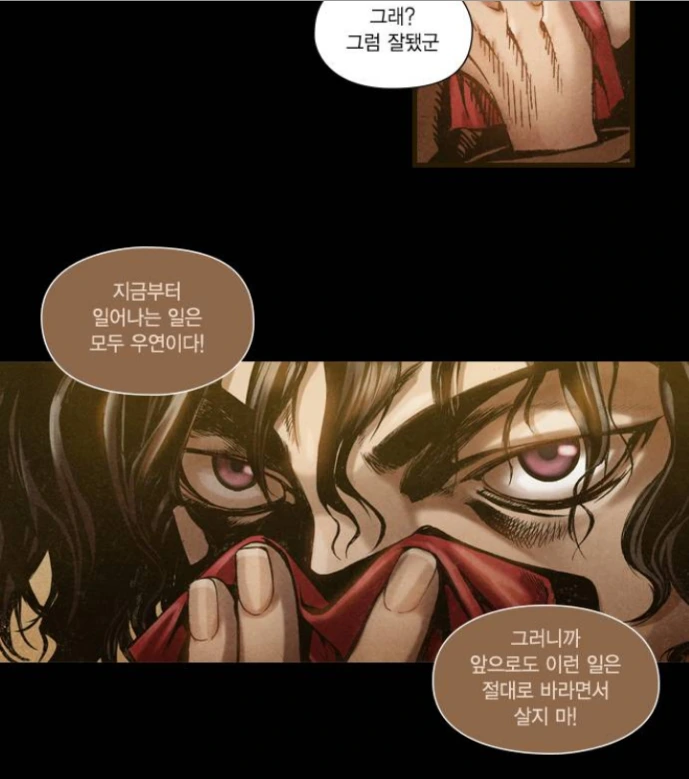 허나 이렇게 자기 자신만으로도 세상살이는 쉽지 않건만, 세상엔 정말로 남을 속이려고 작정한 악한들이 넘쳐난다. 그러면 이 악한들과 어떻게 세상을 살아갈 것인가. 다음 글부터 이 난제를 윤인완 양경일의 종이책 만화이자 컬러로 리부트된 웹툰 신암행어사로 니체와 더불어 다뤄보고자 한다. 당연히 내내 스포일러 리뷰이니 모두에게 이제 완결 직전인 신암행어사의 정주행을 권한다...단 프롤로그와 댓글들은 스포일러이니 건너뛰시고 1화부터 단 5화만 보더라도 왜 한국 만화가 한일합작으로 극장판 애니메이션까지 제작되었는지 알 수 있으리라. 지금부터 일어나는 일은 모두 우연이다...