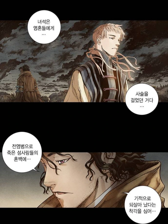 나약하고 부족한 존재인 인간은 기적을 바라는 게 당연하다. 그렇지만 이런 부족한 존재, 인간이기에 거짓된 현실을 직시하고 부정하는 것도 가능하다... 이번 에피소드를 다시 읽으면서, 난 내 안의 진실이 다시 두려워졌다. 나도 용기를 낼 수 있을까. 문수처럼 대단한 용기와 결단력은 아니더라도 저 청년 허준처럼 실수를 저질렀더라도 추후에 자기 자신의 진실을 깨닫고 인정할 수 있을까. 부디 이 글쓰기가 그런 진실에 대한 용기를 쌓아가는 하루 하루로 훗날 돌아볼 수 있기를, 태양을 바라보며 부끄럼없이 떳떳한 나이길... 소망한다...