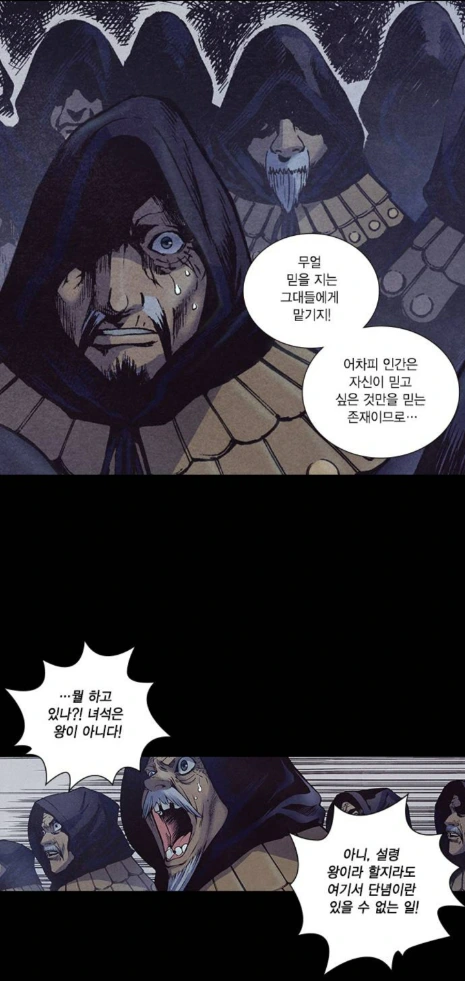 죄를 범한자 가난한 자 귀족이 아닌 자들은 아름답지 않고 추하니 송두리째 말소하라는 이런 미친 명령을 어명이랍시고 그대로 수행한다니. 실로 2차 대전 당시의 나치 파시스트보다도 더한 정신나간 짓거리를 동방최대의 강국이라는 나라가, 그리고 어릴적 자신의 친구가 왕이 되어 이제는 전쟁도 끝났는데 학살을 저지르고 있으니 문수로선 그야말로 미치고 팔짝 뛸 노릇이다. 심지어 원술이든 영실이든 애초에 해모수만 있었을 뿐, 아지태라는 사람이 있었는지 존재 자체를 기억하지 못하고 있었다.