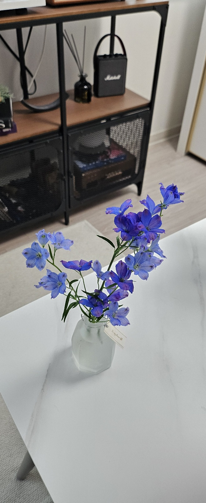 꽃말처럼 하루종일 나의 기분을 행복하게 만들어준다. 델피늄은 꽃봉오리가 돌고래를 닮아