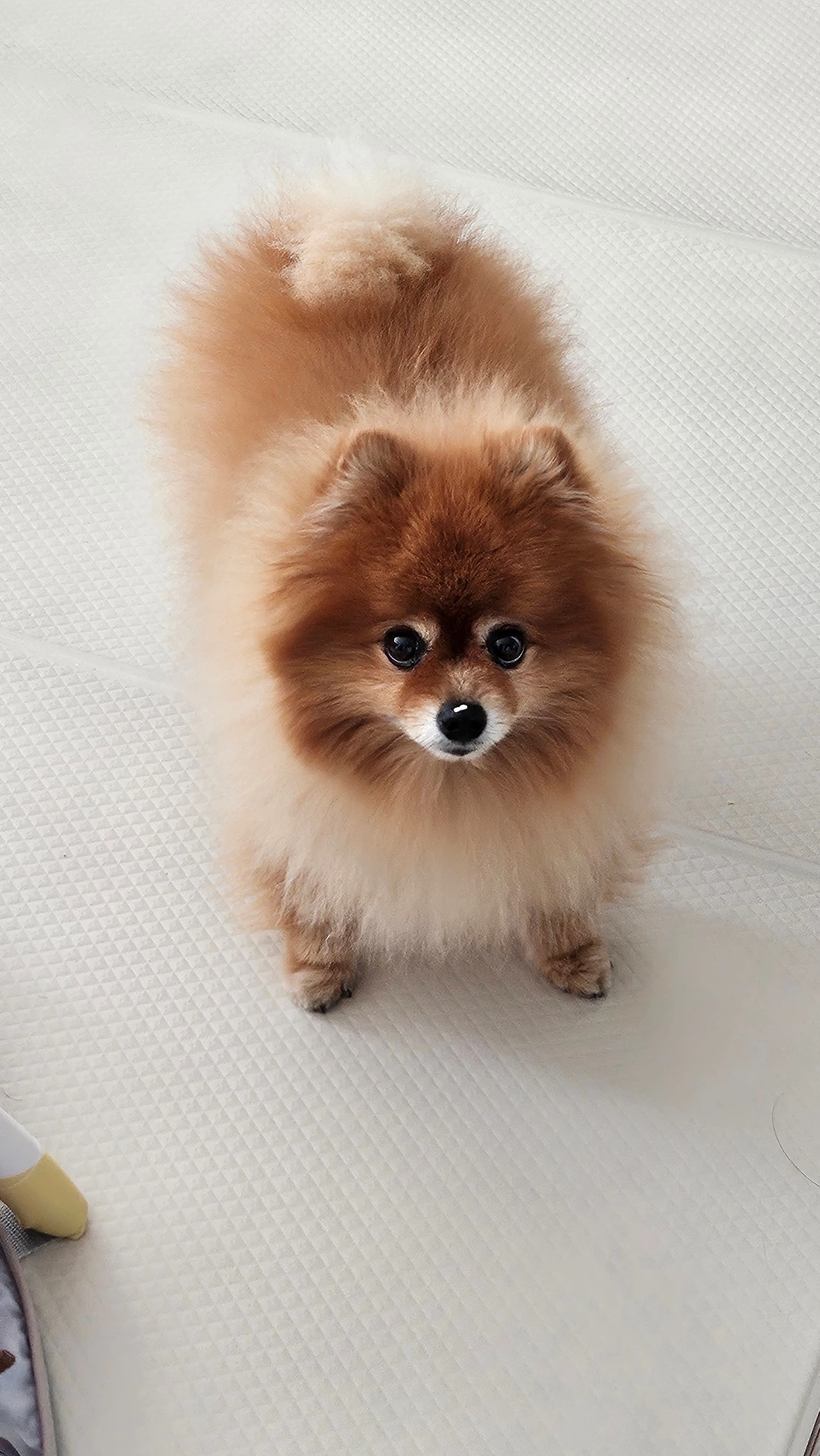 조이는 쪼르르 달려와 어? 내 간식인가? 킁킁.. 하다가 코에 스티로폼이 묻었다.