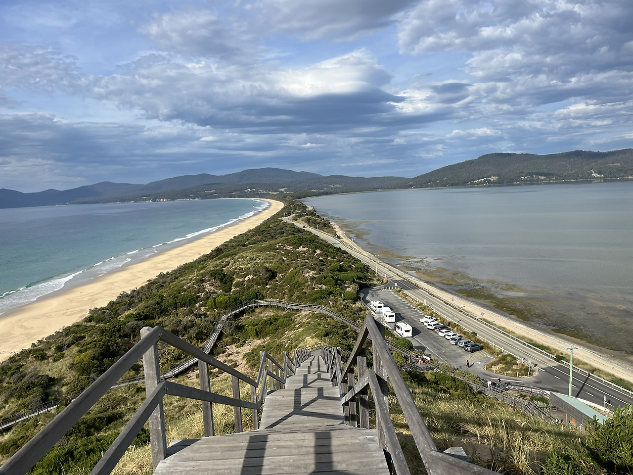 이곳은 브루니 아일랜드의 가장 유명명소라 할 수 있는, 더 넥이다. 마치 목처럼 생겨서 두 개의 바다를 가르고 있다. 마침 선착장에서 가깝기도 하고, 사람들이 더 많아지기 전에 일찍 이곳에 들렀다. 나는 여기보다 오늘 하게 될 트레킹이 더 기대된다. 태즈메이니아는 역시 트레킹이니까!
