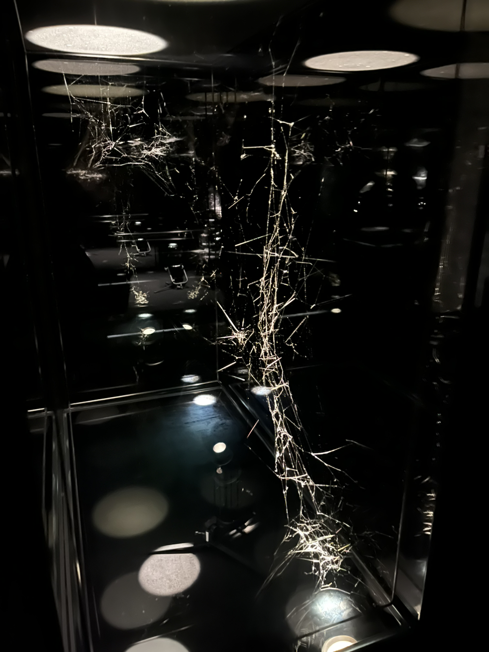 이 어둠의 공간은 아주 신기했다. 어둠과 함께 적막한 기운마저 흘렀다. 어둠과 함께 여러 작품들이 나오다가 전시관의 마지막 즈음엔 거미줄이 나왔다. 거미줄에 빛을 비추는 것 또한 예술이라 부른다. 모두가 이 거미줄을 자세히 관찰하게 됐다. 그리고 어떤 의미를 발견한다면 거미줄 또한 훌륭한 작품이 되는 것, 바로 예술이다.