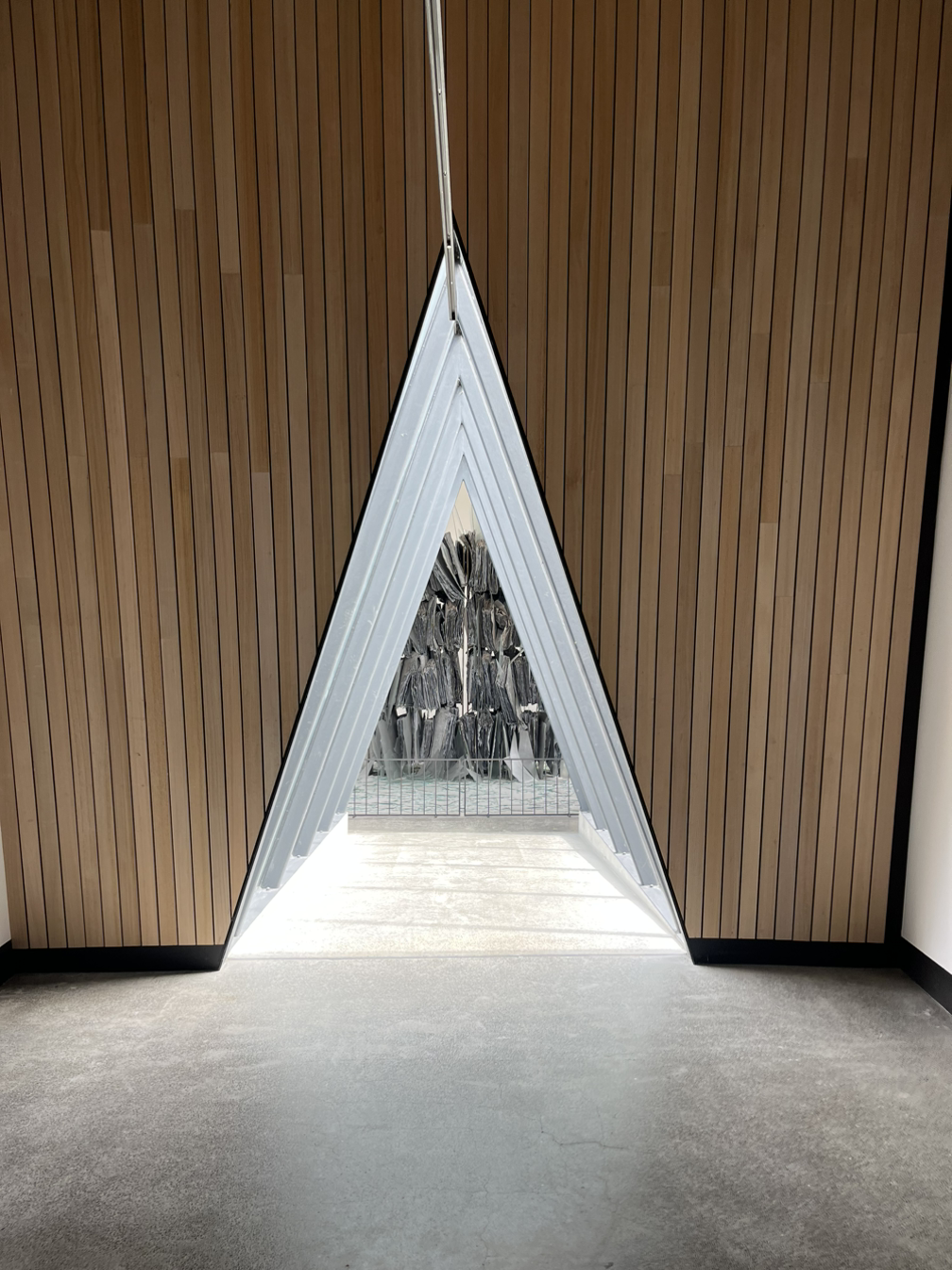 미술관에는 예약을 해야 관람이 가능한 전시가 몇 개 있었다. 그중 하나가 구조물로 바깥의 소리를 끌어와 아래의 미술관에서 들을 수 있게 만든 곳이었는데, 그곳에서는 바깥사람들의 말소리와 함께 종소리가 들렸다. 그 이유는 바로 이 앞의 놀이터에 있었다. 아이들이 뛰어노는 트램펄린 아래에 종이 달려 있다. 아이가 신나는 만큼 소리도 더 청아하게 울려 퍼진다. 다분히 의도적인 놀이터다. 이처럼 모나미술관의 모든 설계에서 예술의 기운이 담뿍 느껴진다. 신선한 자극이 끊임없는 미술관이다.