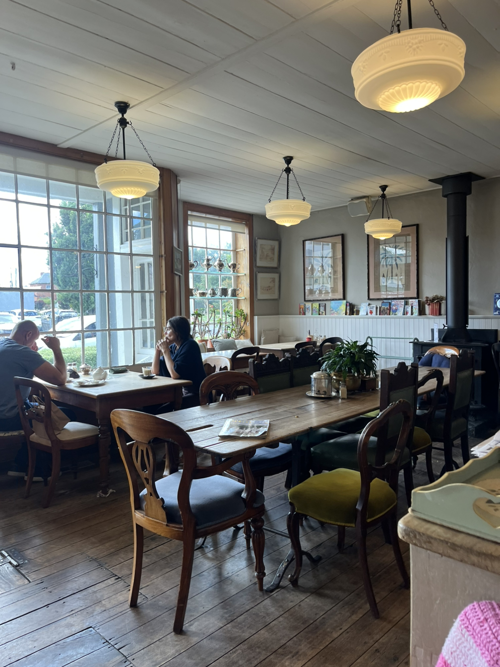 퇴근하고 나서는 농장에서 2분 거리에 있는 카페에 갔다. 이 농장이 리치몬드와 가깝다고는 들었지만, 정말 코 앞에 있었다. 쉐어하우스 언니에게 이 카페의 허니케이크가 그렇게 맛있다는 걸 들었다. 언니는 스콘을 좋아한대서 언니 줄 스콘도 포장해서 돌아왔다. 분위기 전환 겸 들렀는데 정말 분위기가 끝내줬다. 예스러움을 그대로 간직하고 있는 곳이다.