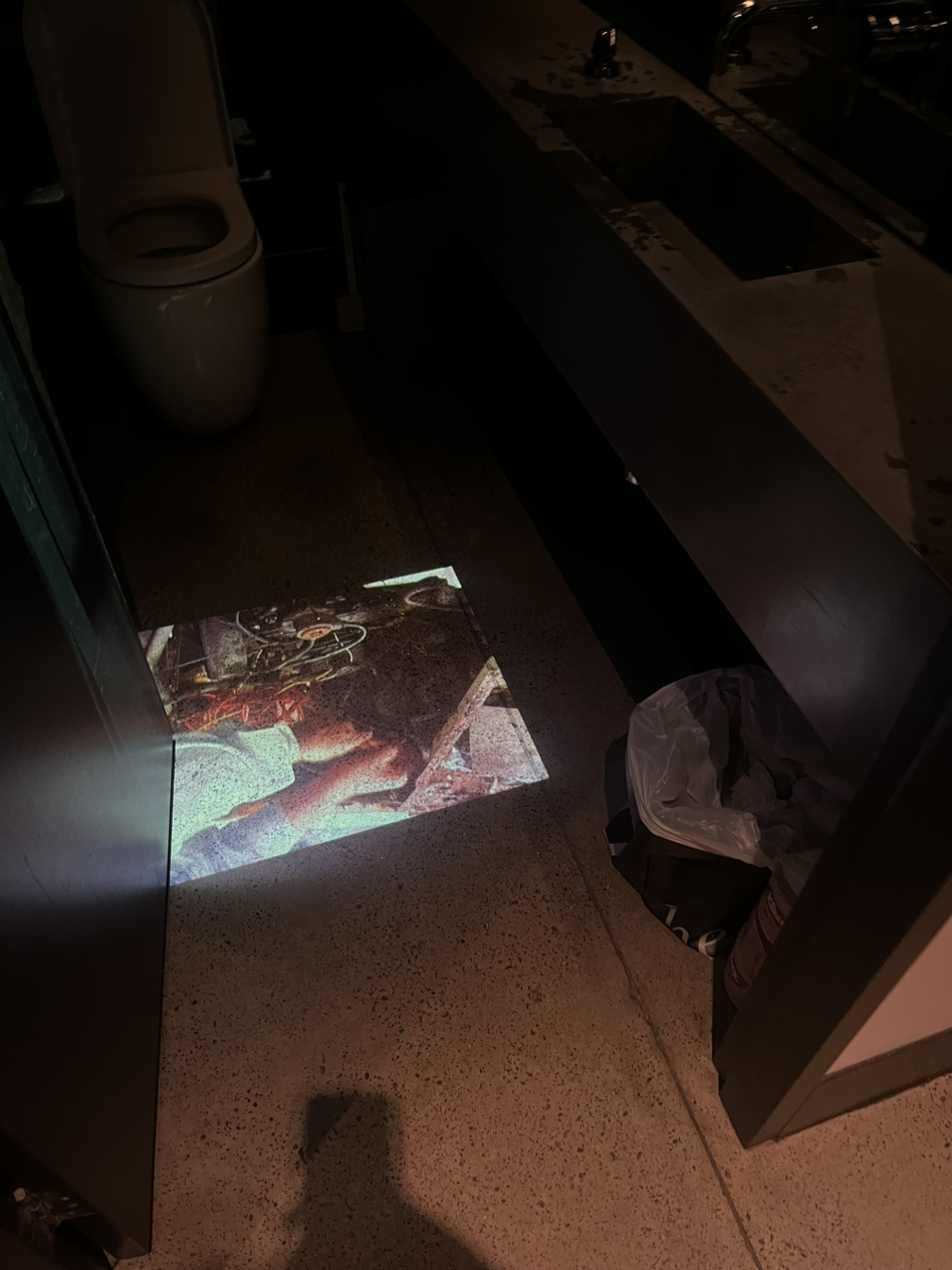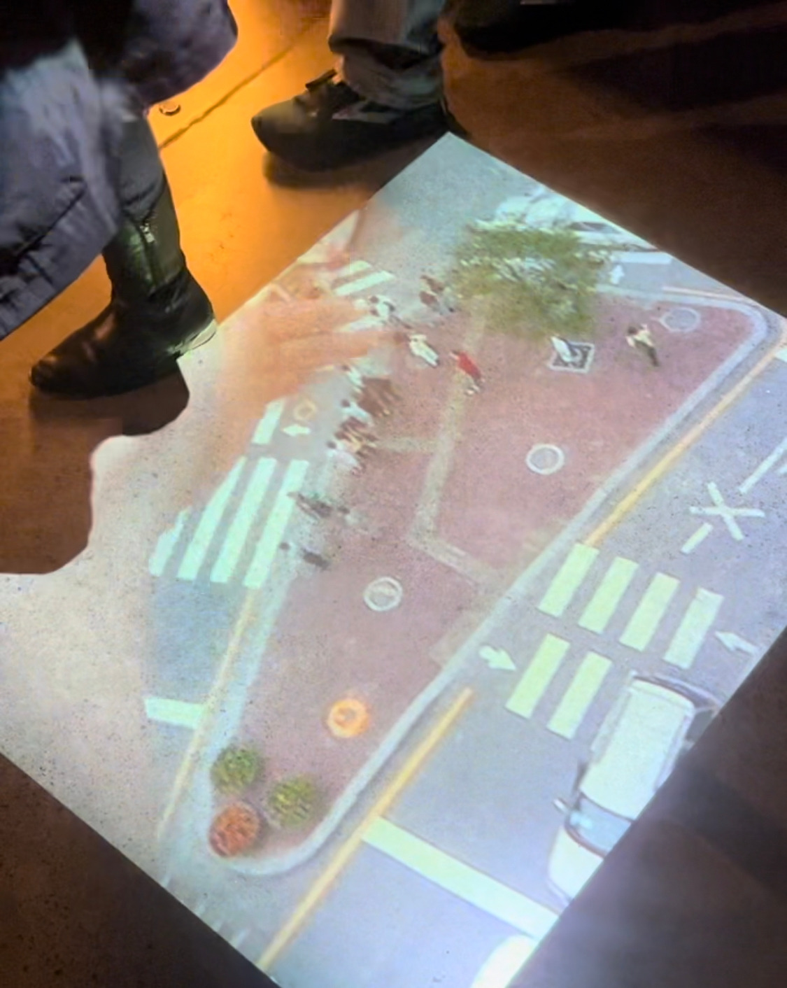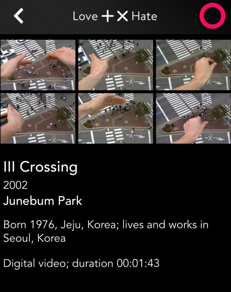 어느 올라가는 계단 중간 바닥에 빔프로젝트를 쏴서 만든 작품이 있다. 이런 전시 형태조차도 현대미술관답다는 생각이 든다. 저 멀리서 횡단보도에다 지휘하는 듯한 손짓이 재밌어서 보고 있는데 작품의 장소가 서울이다.
