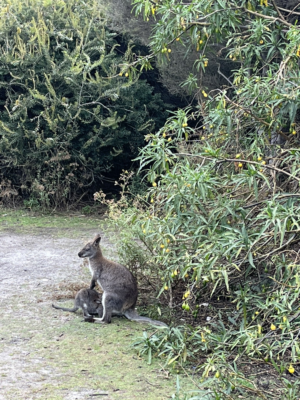 Friendly Beaches 옆에 위치한 캠핑 사이트다. 국립공원인 만큼 캠핑 사이트에 왈라비가 있다. 화장실이 있으니 당연히 세면대는 기본으로 딸려 있을 거라 생각했는데 화장실에 세면대가 없다. 웁스... 생각하지 못한 전개다.