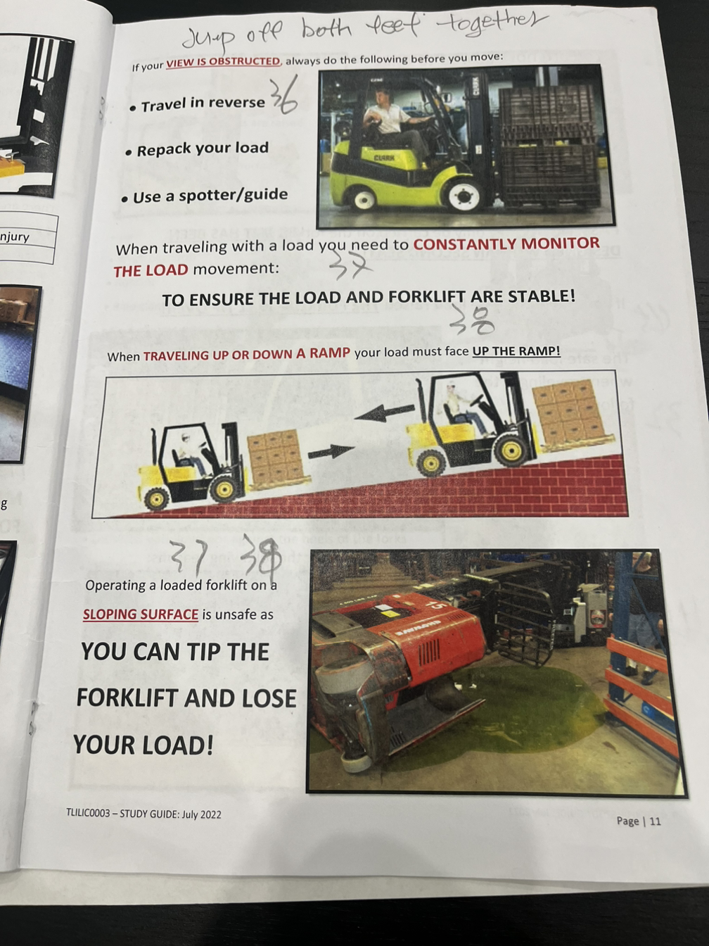 오늘은 대망의 포크리프트 시험날이다. 이런 날에 교재를 깜빡 두고 나왔다. 다행히 이번 시험을 한국인 아저씨와 함께 본다. 사진을 찍어서 몇 글자라도 더 머리에 넣어본다. 시험은 굵은 큰 글씨를 그대로 시험지에 적으면 된다.