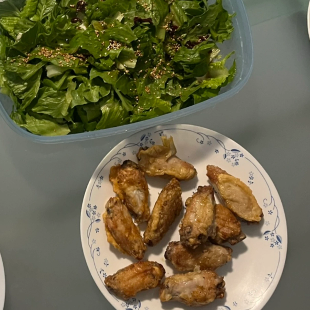 어제 닭가슴살 만두로도 충분히 마음을 받았는데, 미안함과 고마움을 표현하고 싶으신 매니저님께서 치킨을 구워주셨다. 이 치킨은 타피오카 전분으로 만든 치킨이다. 기름에 굽지 않고 에어프라이어로 돌린 거라 더욱 건강한 맛이다.