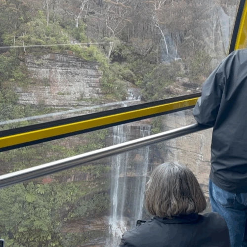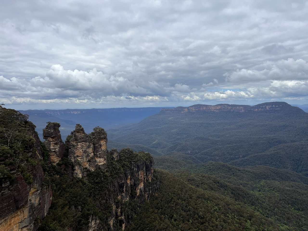 Cableway를 탈 때는 관광객들이 많아서 정신이 없었다. 오른쪽 저 멀리 보이는 작은 봉우리 세 개는 블루마운틴에 엮인 전설, 세 자매 봉이다. 마법사가 전쟁에 나서기 전 세 자매를 봉우리로 만들어 두었는데, 전쟁에서 마법사가 죽는 바람에 그대로 바위로 남게 되었다라나 뭐라나.