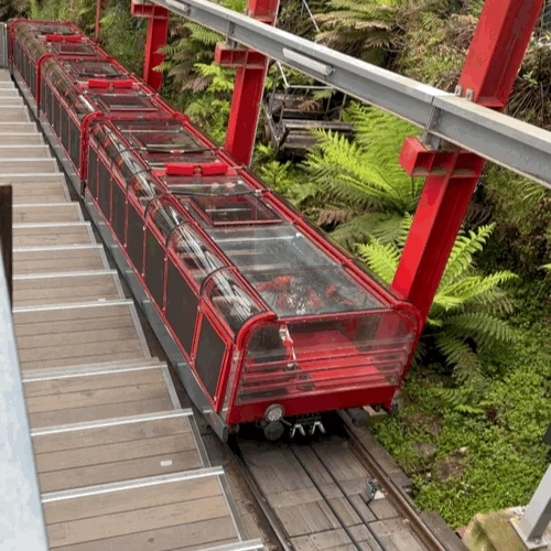 레일웨이는 생각보다 경사가 져 있어서 꽤 놀이기구를 타는 것 같은 기분이 들었다. 앉는 자리 옆쪽으로 좌석 기울기를 조절하는 레버도 있었다. 가파르게 설정해 놓으면 꽤나 무서울 듯하다.