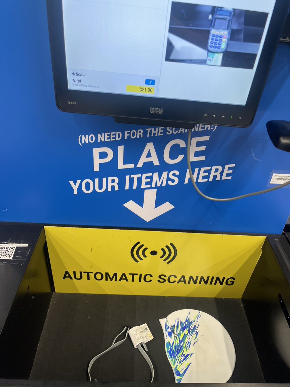 집과 가까운 곳에 아울렛들이 모여있는 지대가 있다. 그래서 오늘은 작업복을 살겸 거길 들렀다. 가는 길에 마침 운동복을 파는 곳이 있어서 수모와 수경을 샀다. 이 곳은 자동 스캔이 된다. 저 네모난 공간에 넣기만 하면 끝이다. 나는 가끔 이런 곳을 발견할 때, 호주의 전산화가 생각보다 수준이 훨씬 높다는 걸 알게된다.