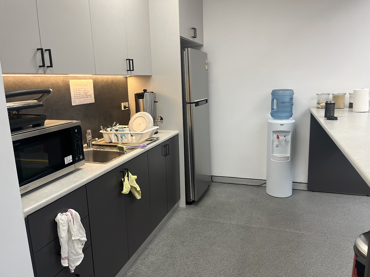 이런 기본 편의시설이 법상으로 지정되어 있다. 노동자들의 작업장 가까운 곳에 화장실은 무조건 있어야 하고 웬만하면 이런 티룸도 기본이다. 포크리프트 학원에서 노동자들은 편의시설이 제대로 갖춰지지 않았을 때 매니저나 슈퍼바이저에게 그 사항들을 요청할 권리가 있다고 했다.