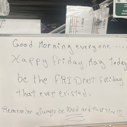 라쟈는 친절하고 긍정적인걸 강조한다. FRIDiest라는 단어를 적어두니 피터가 그런 말이 어딨냐며 코웃음을 치고, 라쟈는 가장 최고의 금요일을 보내라는 말이라며 발끈한다.