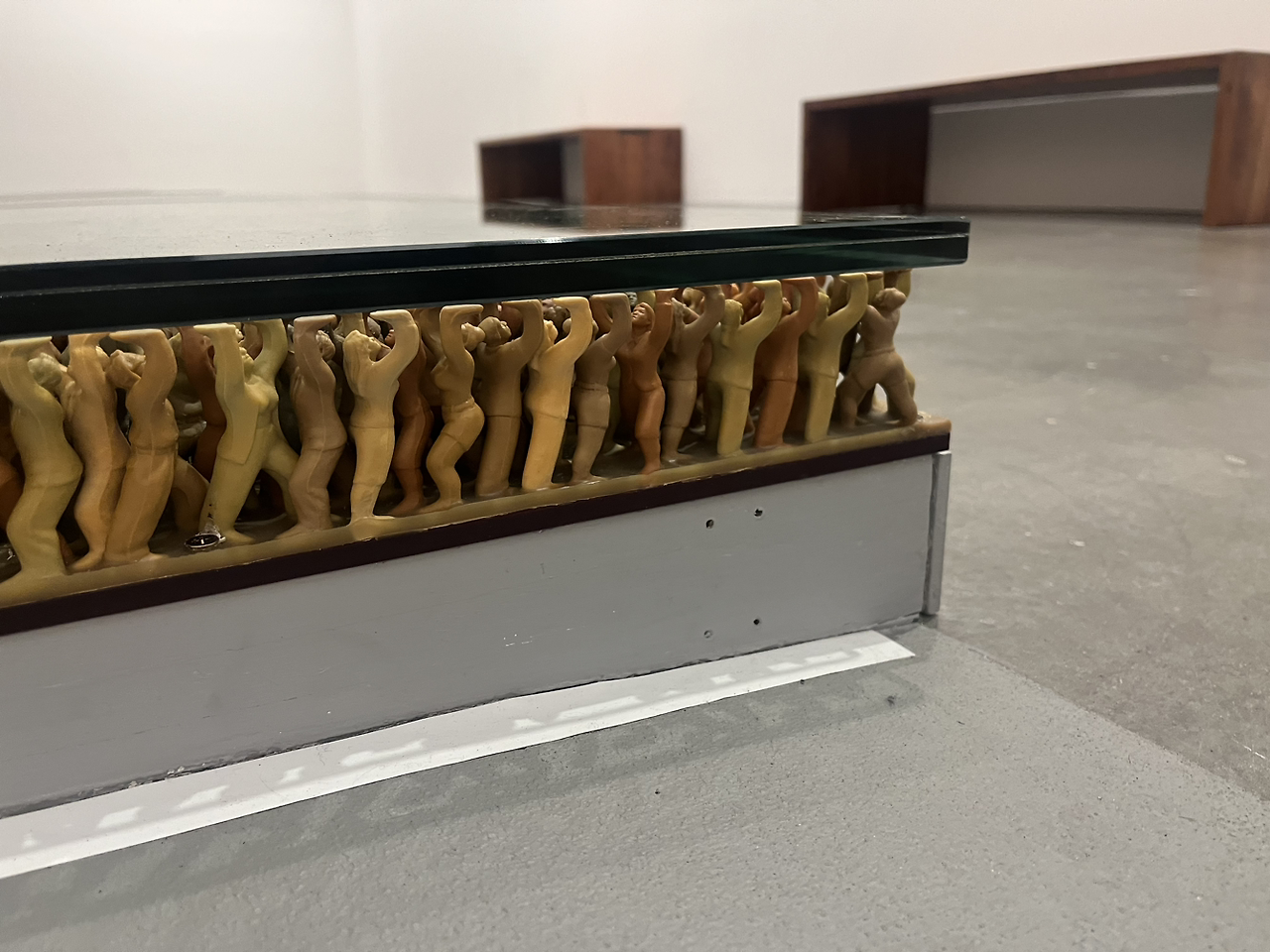 사람들이 걷는 유리판 아래에는 이렇게 수많은 사람들이 있었다. 그것도 꽤나 힘겨운 모습으로 사람들이 걷는 길을 받치고 있는 형상이다. 이런 작품을 통해 작가님이 전달하고 싶었던 건 무엇이었을까? 나는 내가 아무렇지도 않게 겪는 모든 일상을 떠받들고 있는 타인의 노력들을 순간 느꼈다. 별생각 없이 내가 누리고 있던 것에 이런 처절한 희생이 숨겨져 있었을지도 모른다는 생각 말이다.