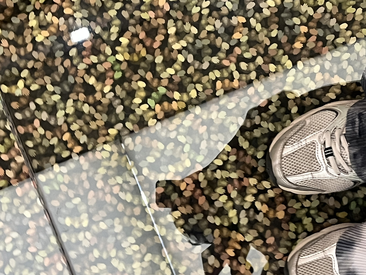 심상치 않은 작품을 만났다. 이 조그만 점들이 유리판을 받치고 있다. 우리는 그 유리판을 건너 다음 장소로 이동해야만 한다. 이 유리판 아래에는 재미있는 생각이 숨어 있다.